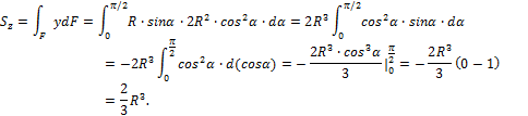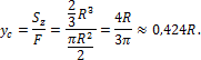 Определить статический момент полукруга радиусом R (рис. 4.3) относительно горизонтальной оси z, совпадающей с диаметром, и координату центра тяжести yc.