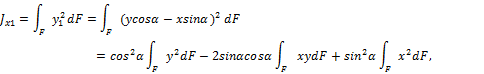 Первые два интегральных выражения называются осевыми моментами инерции относительно осей x и y, а третье - центробежным моментом инерции сечения относительно осей x, y.