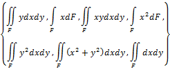 В дополнение к статическим моментам в системе координат x0y рассмотрим три интегральных выражения: