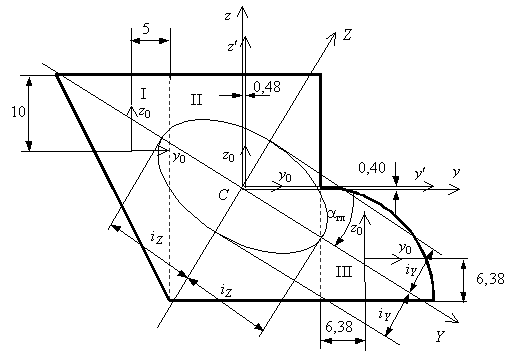6. Вычислить величины главных радиусов инерции. Величины главных радиусов инерции вычисляем по известным формулам: