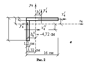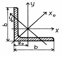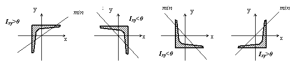Знак центробежного момента инерции для угловой прокатной стали определяется согласно рис. 2, поэтому Ixy3 = -13,17 см4.