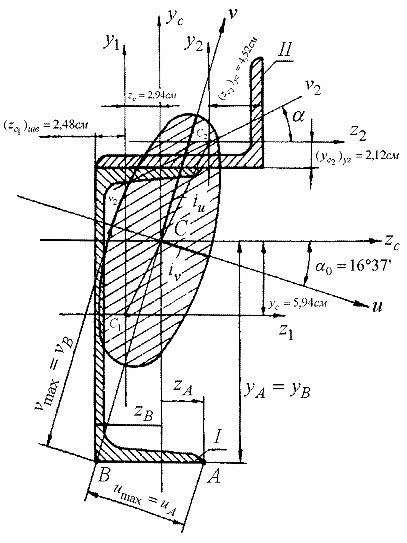 Для составного сечения, состоящего из швеллера и уголка (рис.1) требуется: