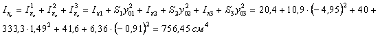 Для контроля правильности вычисления величины моментов инерции составного сечения производим проверки.