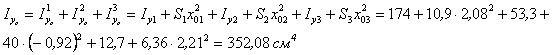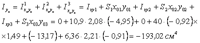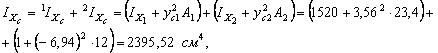 2. Вычислим величины осевых и центробежных моментов сечения относительно центральных осей хс -ус: