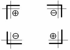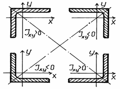 Знак центробежного момента инерции уголка определяем по следующему правилу (см. рис.2):