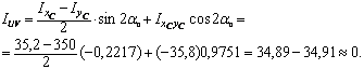 Для проверки вычислений удобно использовать следующее свойство: сумма моментов инерций относительно двух любых пар ортогональных осей есть величина постоянная. Тогда должно быть