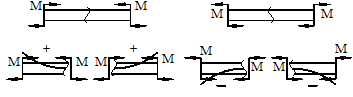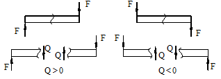 Если внешняя сила вращает отрезанную часть балки по часовой стрелке, то сила является положительной, если внешняя сила вращает отрезанную часть балки против хода часовой стрелки, то сила является отрицательной.