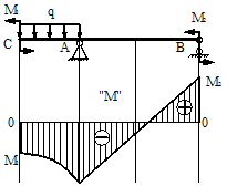 - Дана эпюра изгибающих моментов. Чему равен момент пары сил (в кНм), приложенной в сечении В ?