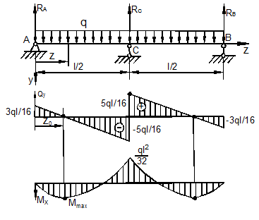 Для того, чтобы произвести расчет балки на изгиб, необходимо знать величину наибольшего изгибающего момента М и положение сечения, в котором он возникает. Точно также, надо знать и наибольшую поперечную силу Q. Для этой цели строят эпюры изгибающих моментов и поперечных сил. По эпюрам легко судить о том, где будет максимальное значение момента или поперечной силы.