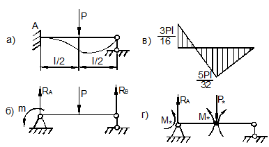 (консольная балка) (рис.6.6,в). В заделке три реакции. Балка статически