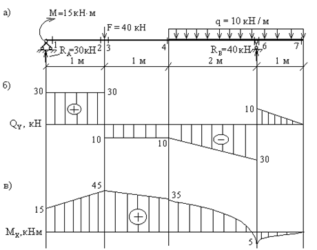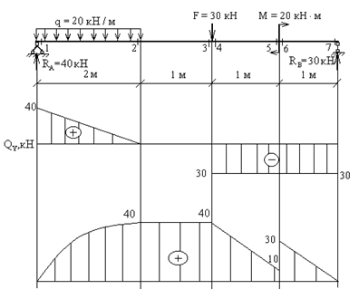 построения эпюр внутренних силовых факторов для балок на двух опорах