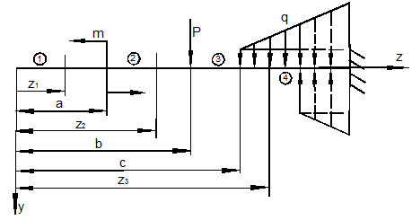 Для построения эпюр балка разбивается на участки, в пределах которых функция внутренней силы не меняет своего аналитического выражения. За границы участков принимаются сечения, в которых приложены внешние нагрузки: сосредоточенные силы, сосредоточенные моменты, начинается или заканчивается распределенная нагрузка одного направления и изменяющаяся по одному закону, а также начало и конец балки.