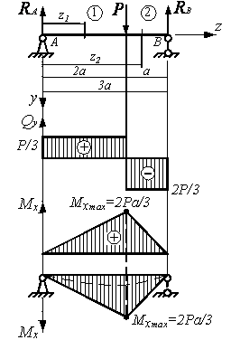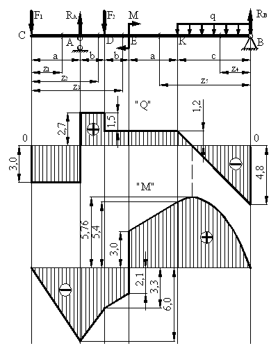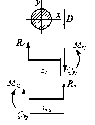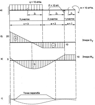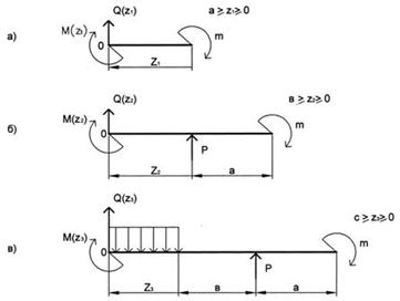 и, выбрав масштаб, построим их эпюры. Для этого применим метод сечений. На