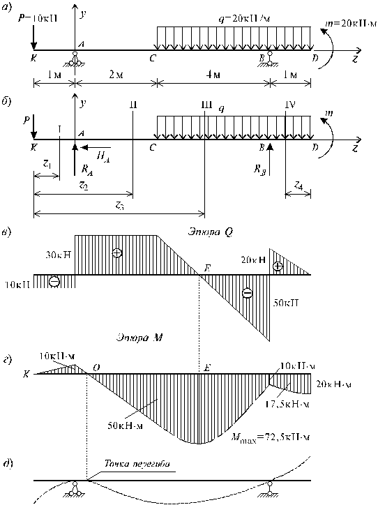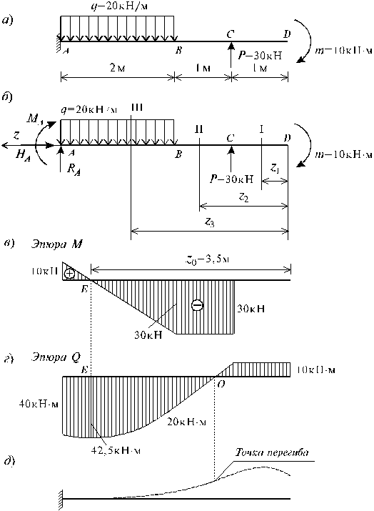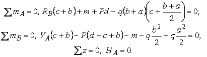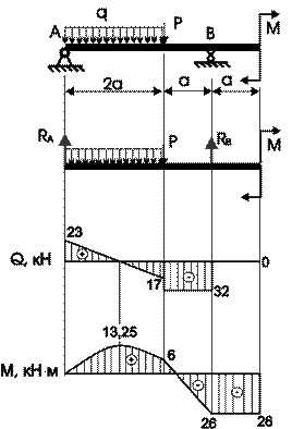 если P= 20 кн =2 т, М =20 кНм =2 тм, q=1,5