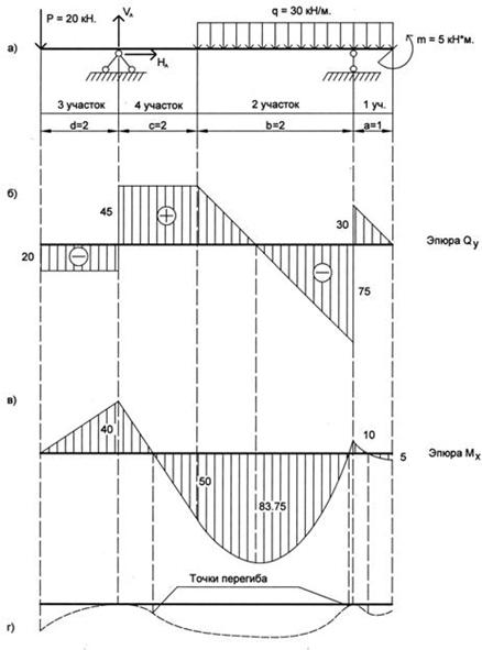 , возникающие в поперечных сечениях балки,
