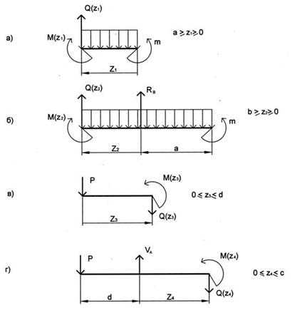 составлении уравнения для Mx считаем, что равнодействующая (qZ1) от равномерно распределенной