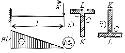 (рис. а), причем h = 3b. Длина балки l= 4 м, F = 6 кН. Материал балки – сталь с Ry = 240 МПа,