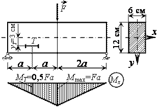 Наибольшие нормальные напряжения возникают в крайних волокнах того же сечения, где приложена сила F, т.е.