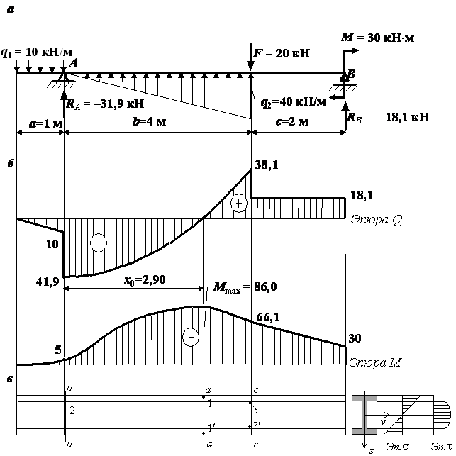 эпюра нормальных напряжений