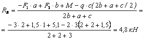балку в масштабе, наносим все нагрузки и размеры и определяем опорные реакции RA и RC , используя