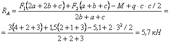 вычисленные значения реакций RA