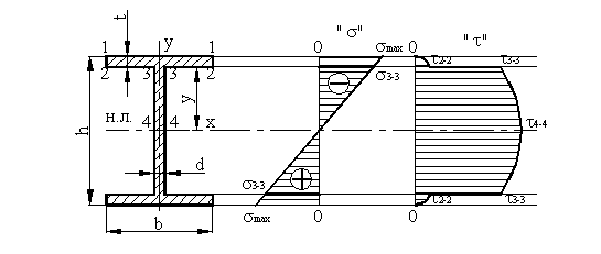 эпюра касательных напряжений