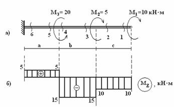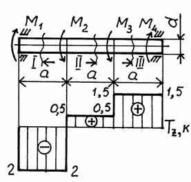 Построить эпюру Mкр для вала, изображенного на рисунке.