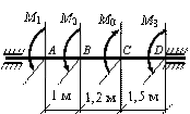 кНм; l1=3,6 м; l2=2,6 м; l3=1,8 м;