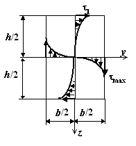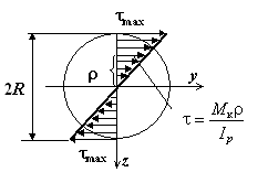 Касательные напряжения в поперечном сечении распределяются по линейному закону, поэтому