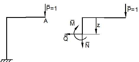 Рассечём раму в стойке на расстоянии z. В поперечном сечении возникают внутренние силовые факторы N, Q, M (рис.13.1,