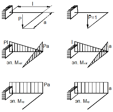 которая учитывает кручение и изгиб стержней рамы. На рис. 13.24 приведены эпюры изгибающих моментов от заданной и единичной нагрузок.