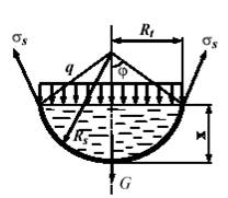 В данном уравнении величина G – вес жидкости, заполняющей отсеченную часть сферической оболочки (см. рис.8.2).
