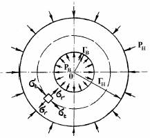 2) Проверка прочности сплошной трубы с внутренним радиусом а и внешним радиусом с, нагруженной давлением р.