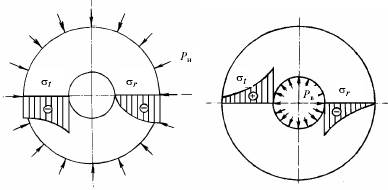 Из теории расчета толстостенных труб известно, что и при нагружении внутренним давлением, и при нагружении внешним давлением опасными являются точки на внутреннем канале трубы.