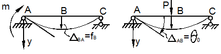 “Соответствие” заключается в том, что речь идет о перемещении того сечения, где приложена рассматриваемая сила, причем о таком перемещении, что произведение его на эту силу дает нам величину работы. Для сосредоточенной силы это будет линейное перемещение по направлению действия силы – прогиб, удлинение, для пары сил – это угол поворота сечения по направлению действия пары.