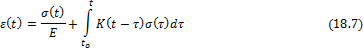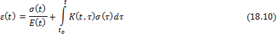 Первое слагаемое в выражении (18.7) соответствует упругой деформации, а интегральный член – деформации ползучести, накапливаемой в образце при действии нагрузки от момента времени t0 до t.