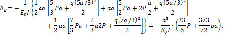 Перемножая эпюры моментов изображенных на рис.18.7, в, г по формуле Мора, последовательно определим вертикальное перемещение т.В от действия силы X = 1 и от действия системы внешних сил: