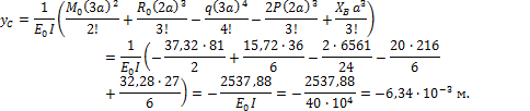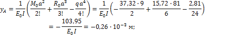 По методу начальных параметров последовательно определим величины упругих перемещений в точке А и С: