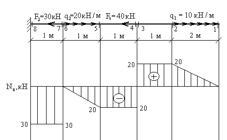 распределенная нагрузка, а также сечения, где имеется перелом стержня.