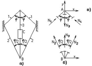 Направления продольных сил (рис. 2.4, б – г) приняты в предположении, что они являются растягивающими (т. е. положительными). Если в результате расчета значение Ni получится со знаком «минус», то это будет означать, что в действительности стержень в этом сечении сжат.