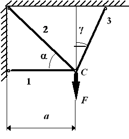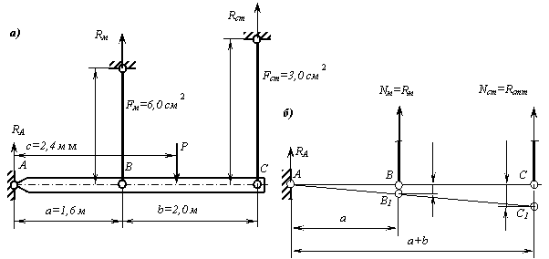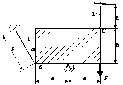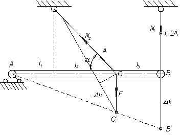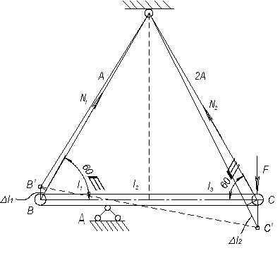 Дана статически неопределимая плоская шарнирно - стержневая система, состоящая из абсолютно жесткого бруса, опертого на шарнирную опору и прикрепленного к двум стержням ВВ1 и СС1 при помощи шарниров.