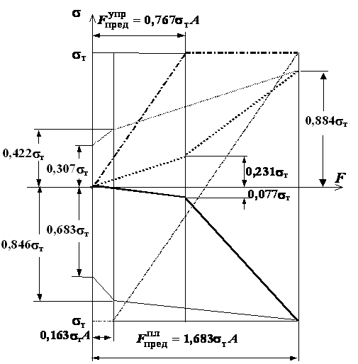 4. Найти величины несущей способности конструкции из расчетов по методам допускаемых напряжений и разрушающих нагрузок при одном и том же коэффициенте запаса прочности. Сопоставить результаты и сделать вывод.