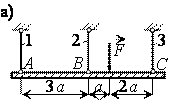 жесткая балка подвешена на трех одинаковых стержнях и нагружена силой F. Во сколько раз уменьшится напряжение в среднем стержне,