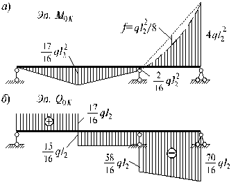 Построить эпюру изгибающих моментов и поперечных сил для двухпролетной балки, показанной на рис. а.