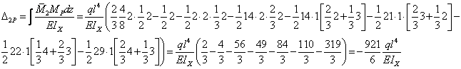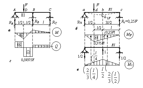 приложенной в направлении отброшенной опорной реакции RB (рис. 4.7.4, в). Используя правило Верещагина,