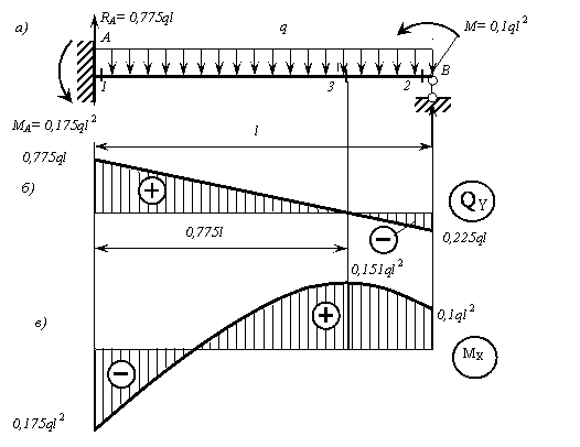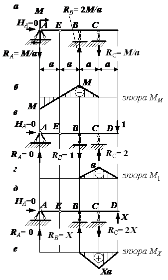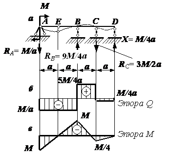 достаточно определить изгибающие моменты в трех точках (рис. б): Ma = Mc = 0; Md =