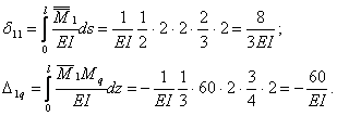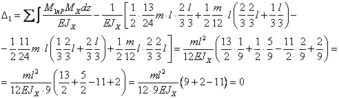 1.2) Находим коэффициенты канонических уравнений метода сил при помощи правила Верещагина: