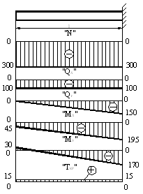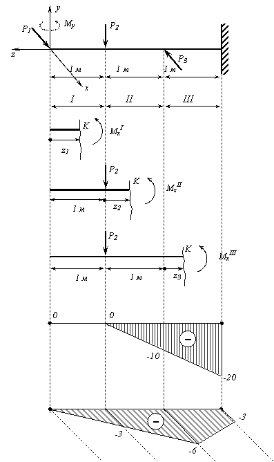 осей. Эпюры моментов строим со стороны растянутых волокон в той плоскости, в