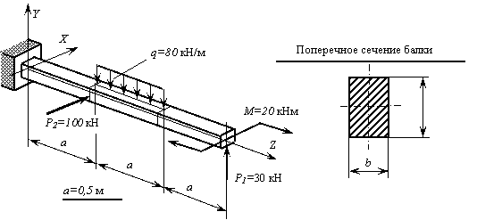 (рис. 1), построить эпюру нормальных напряжений в защемлении и найти максимальное нормальное напряжение