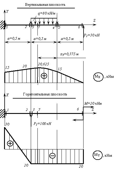Рассмотрим плоскость OХZ (горизонтальную плоскость) и построим эпюру Му.